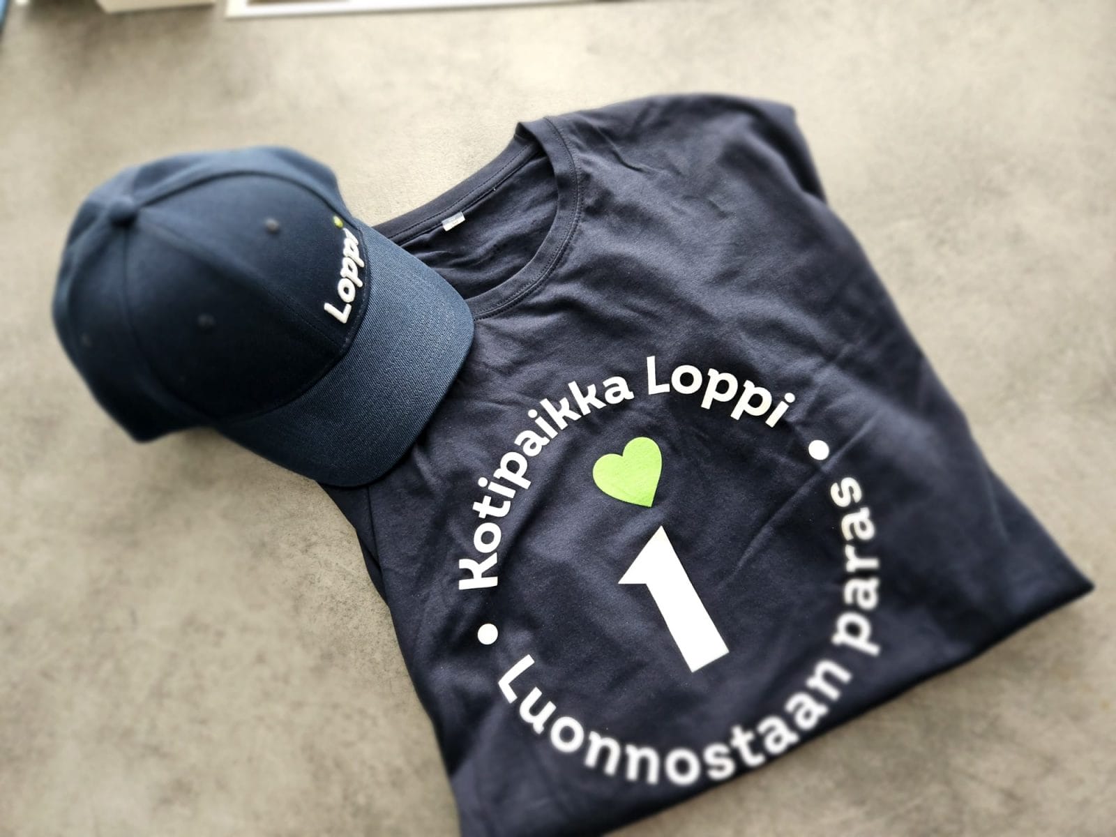 Loppi t-paidat ja lippikset myynnissä Palvelupiste Rosamundassa