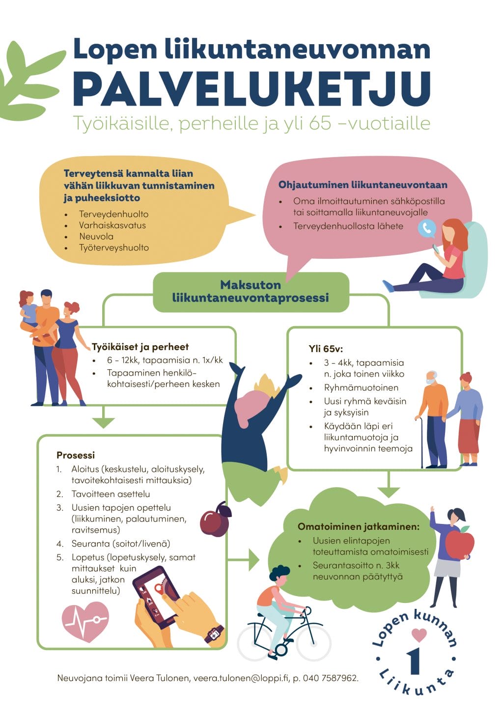 Lopella liikuntaneuvonta on käynnistetty hankkeen kautta vuonna 2023 ja vuonna 2025 palvelun kehittäminen jatkuu hankerahoituksen turvin. Vuonna 2025 liikuntaneuvontaa tarjotaan työikäisille ja yli 65 -vuotiaille. Uutena kohderyhmänä käynnistetään perheliikuntaneuvonta, joka on suunnattu pääasiassa perheille, joissa on alle kouluikäisiä lapsia.