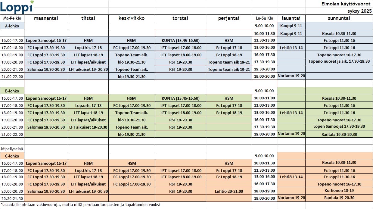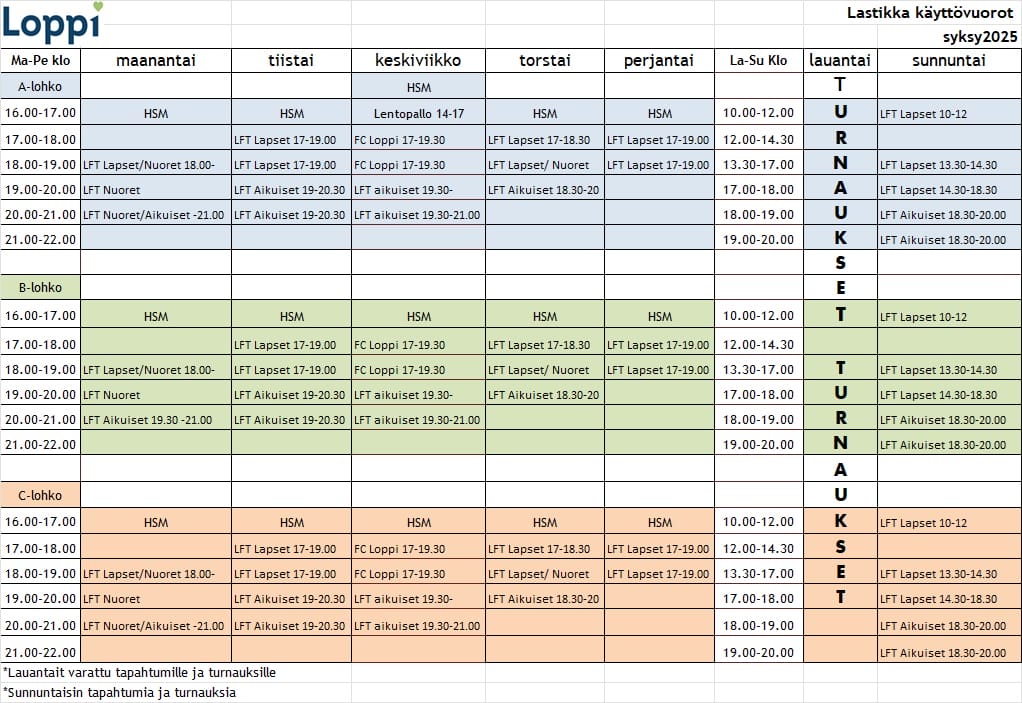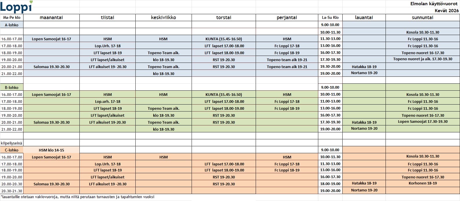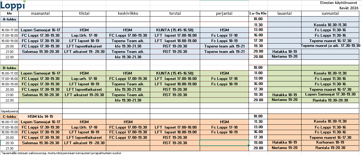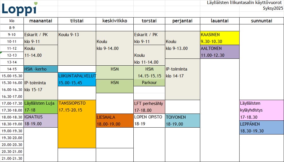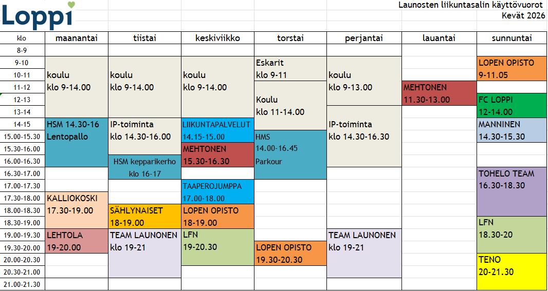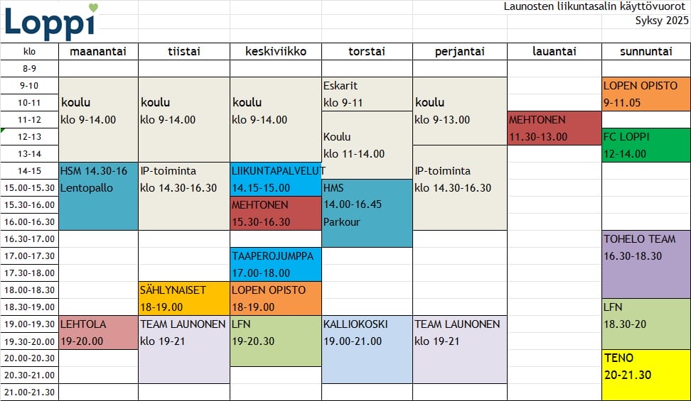 Kaudelle 2025-2026 (syksy 2025-kevät 2026) salivuoroja voi tiedutella: mira.sydanmaa@loppi.fi