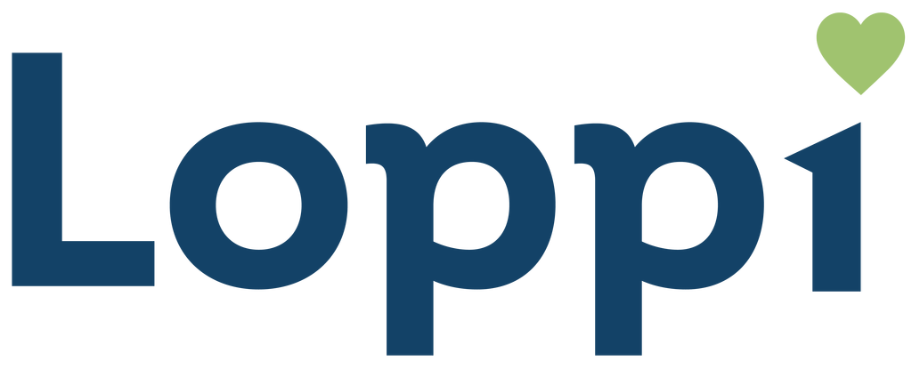Lopen logo on pääosin tekstimuotoinen, mutta siihen on tuotu joitain graafisia elementtejä korostamaan Lopen brändiattribuutteja. Logon tekstityyppi on moderni ja suoraviivainen Intro, jossa on kuitenkin hieman pehmeyttä ja päätteellisyyttä. Lopun i on korvattu graafisella elementillä. Muotoiltu i-kirjain, jonka pisteenä on vihreä sydän, viestii monista eri asioista. Terävä väkänen tekee siitä paitsi numeron 1, myös talon kulman siluetin: Loppi on paras asuin- tai vapaa-ajan paikka. Sydän kertoo Lopen yhteisöllisyydestä ja elinvoimasta ja sen vihreä väri luonnosta. Sydämen sijoittaminen sivuun kirjaimen rungon keskilinjasta tekee koko logosta dynaamisemman. Logon pääväri on tummansininen vesi, joka antaa sille arvokkuutta. Sydämen vihreä värisävy taas löytyy paletista nimellä luonto.