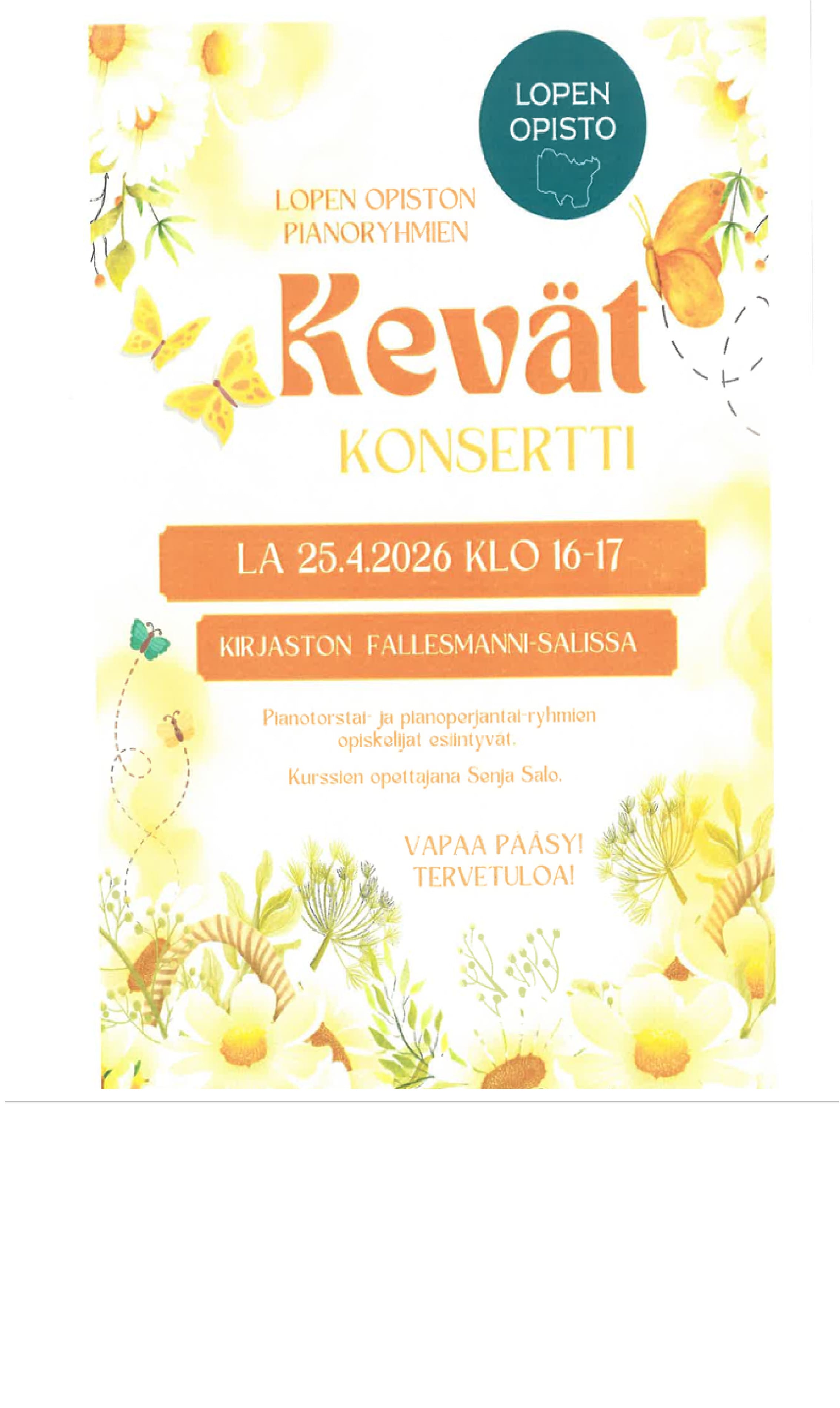 Lopen opiston kurssit ja luennot ovat avoimia kaikille, myös muiden kuntien asukkaille.